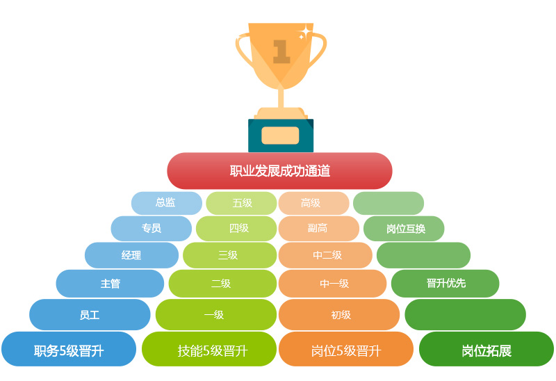 在人力開發(fā)體系的基礎(chǔ)上,集團(tuán)為保證員工持續(xù)的競爭力、適應(yīng)性,以及不斷的發(fā)展動力,特開發(fā)了“根源特色”的四條發(fā)展通道。在傳統(tǒng)的“技術(shù)和管理”兩個發(fā)展維度的基礎(chǔ)上,增設(shè)了“崗位五級上升通道”及“崗位拓展/輪換上升通道”。集團(tuán)的每個員工都可以根據(jù)自己的發(fā)展訴求以及自身特點,選擇發(fā)展通道?!巴ǖ纼?nèi)部可以上升,之間可以互通”,讓每個員工都能在根源得到職業(yè)的發(fā)展,實現(xiàn)職業(yè)的成功。